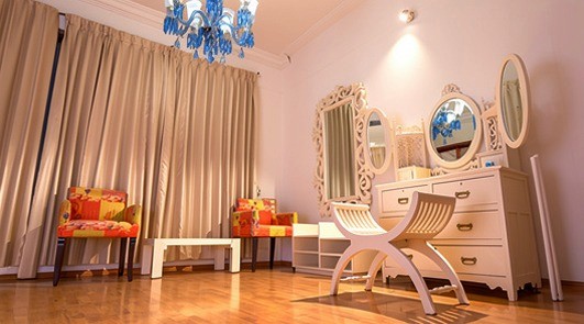 An elegant space blending vintage charm and aesthetic details, designed to feel calm, refined, and visually beautiful. A serene, premium setting where you can prepare, unwind, and take in your special moments.